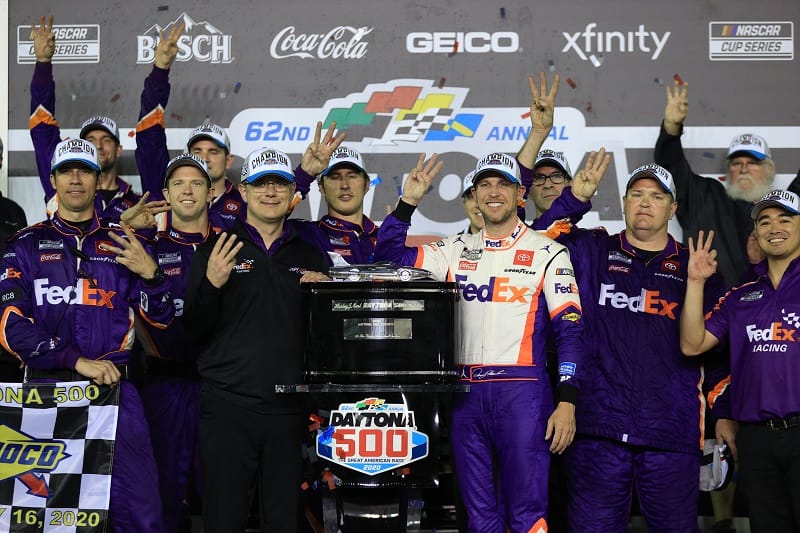 The 2020 Daytona 500 began with rain and ended with carnage. After the intended start to the NASCAR Cup Series era was postponed from Sunday to Monday following twenty laps due to rain, Denny Hamlin scored his second straight 500 victory in scary circumstances as Ryan Newman was involved in a massive flip and wreck coming to the finish.