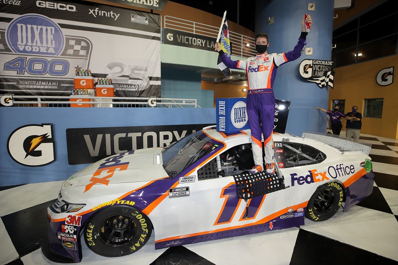 Sunday’s Dixie Vodka 400 at Homestead-Miami Speedway was plagued by lightning strikes that forced three hour-long delays. Once the skies were finally cleared, Denny Hamlin was in Victory Lane for the third time in the 2020 NASCAR Cup Series season.