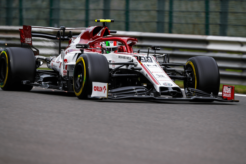 Giovinazzi crashed his Alfa Romeo Racing ORLEN car heavily on the exit of the Fagnes chicane and then came back across the track before coming to rest on the grass. However, his left-rear wheel detached itself from the C39-Ferrari and went across the track and into the path of Russell, who had no where to go but to the scene of his own accident.