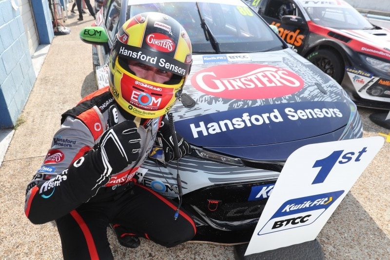 Tom Ingram took a lights to flag victory in race two of the day at Thruxton in the Kwik Fit British Touring Car Championship.