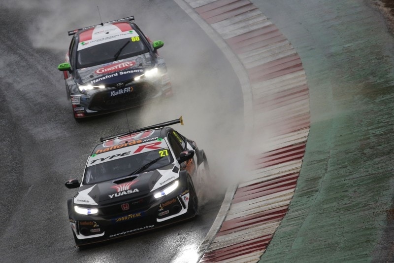Dan Cammish produced a stunning drive to win the first race of the Kwik Fit British Touring Car Championship Finals Day in treacherous wet conditions at Brands Hatch. The Halfords Yuasa Racing driver excelled in tricky conditions to win from fourth on the grid. Ash Sutton made a late charge in second to finish just eight tenths of a second adrift at the chequered flag.