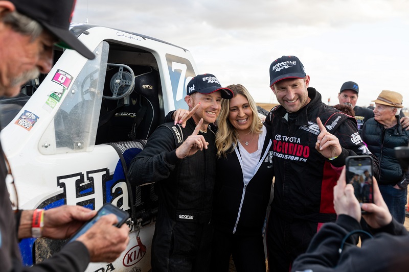 Amid the chaos, Eric Hardin inherited the lead after Kevin Thompson‘s truck broke down on lap three and, despite fears of his transmission coming apart in the last twenty miles, held on to beat Christian Sourapas with a time of 6:46:37, over twelve minutes and forty-two seconds ahead. Sourapas was filling in for his father Steve, who had a medical situation prior to the weekend, and walked away with a runner-up despite having last raced a fully-fledged Trophy Truck in 2020 (he mainly competed in Spec truck models)