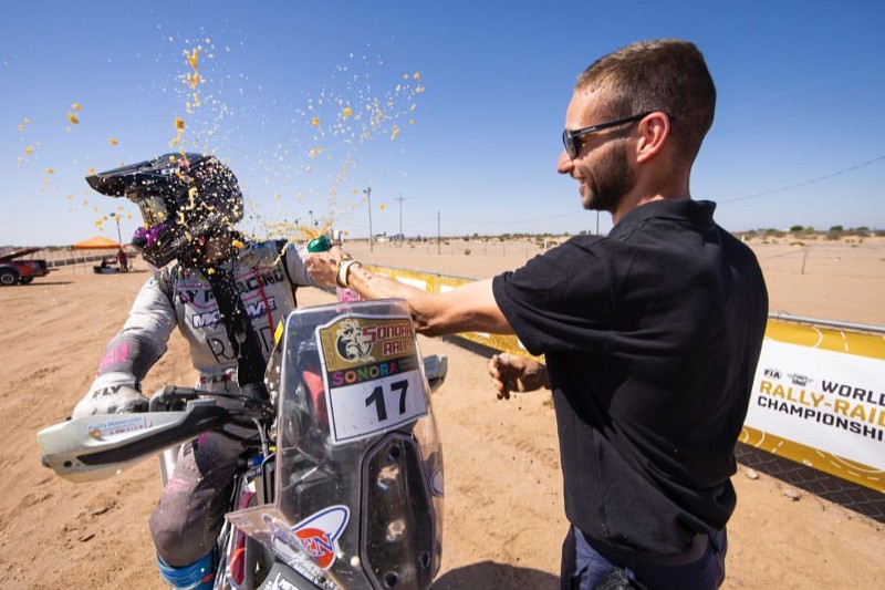 After finishing second in the Prologue, Dumontier did not take long to show he has no signs of rust from missing the ADDC as he won all five stages of the main rally. He also had moments of running in the top ten overall, which meant competing alongside riders from the premier RallyGP category, but backed off in Stage #2 due to the dust. Even Dumontier’s most tumultuous day in the third leg, during which cactus thorns got stuck in his arm and he had to stop to repair his torn roadbook, still ended with him winning by two minutes and twenty-one seconds.