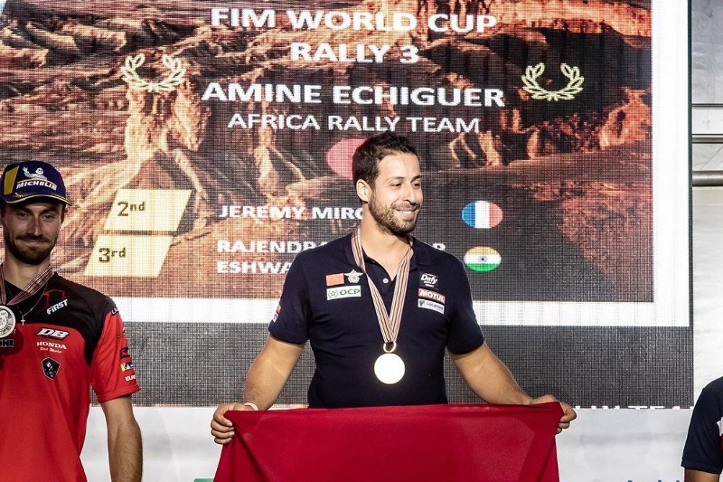The Rallye du Maroc serves as Echiguer’s home rally, hailing from Rabat, Morocco; the event was the first of two rounds with Rally3 riders during the inaugural W2RC season in 2022. Riding for his own team, Echiguer took the Rally3 overall lead after winning Stage #1B and scored three more stage wins to secure the general victory. He previously won the rally in the 2021 Enduro Cup, the first Moroccan to achieve the feat.