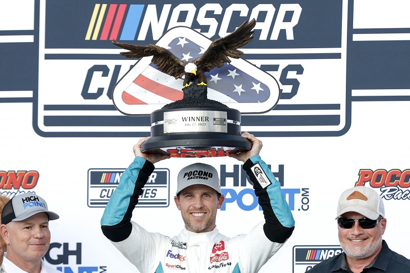 The victory is Hamlin’s 50th in his Cup career, the 600th for Toyota in all three national divisions, and his seventh at Pocono. He also took an eighth checkered flag there in 2022 before being disqualified, to which he remarked there was “no tape on the car this time” to take it away.