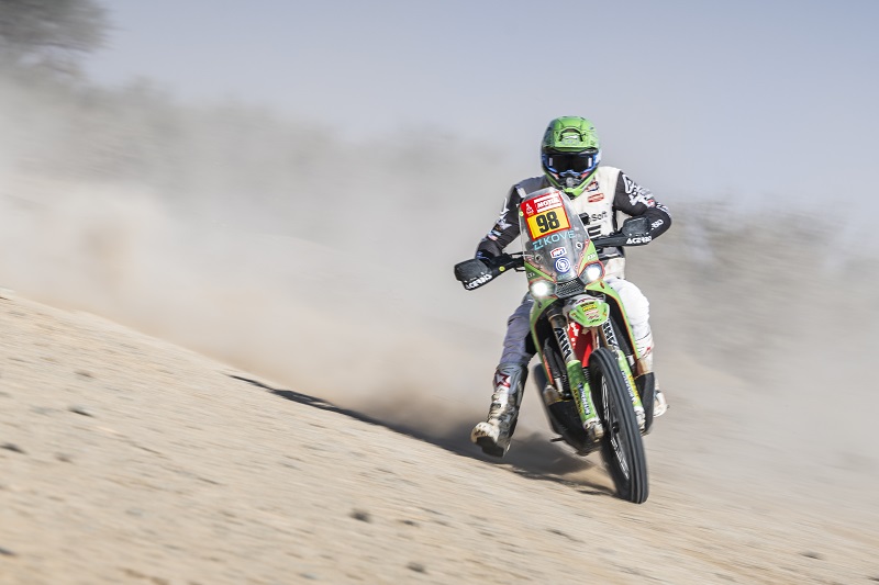 Whether Klein would even race the Dakar in 2024 was an uncertainty for much of the fall. Despite being the 2022 World Rally-Raid Champion in Rally2 and showcasing himself at the 2023 Dakar Rally, he was dropped by KTM midseason for a lack of funding and struggled to find a new home. Kove, a Chinese manufacturer who was running their maiden rally raid season, signed him for the 2024 race with an arrangement that granted him factory-level access to their resources and crews despite not formally being a factory rider. As such, he was technically still a privateer competing under his Klein Off-Road Racing Team banner and rode a green EffectiveSoft-sponsored bike in contrast to his new colleagues.