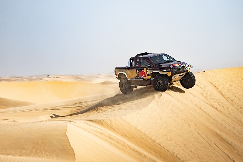 A hard landing also took out Guillaume de Mévius, the FIA runner-up in Stage #1, when he suffered a vertebra compression upon impacting the bottom of a dune at KM 20. His team-mate Guerlain Chicherit stepped up in his place and held off yesterday’s winner Nasser Al-Attiyah for the stage win. Seth Quintero, a Toyota Hilux driver like Chicherit, edged out Toyota Gazoo Racing team-mate Lucas Moraes by a minute and a half for his second career Ultimate podium after Stage #2 at the Dakar Rally.