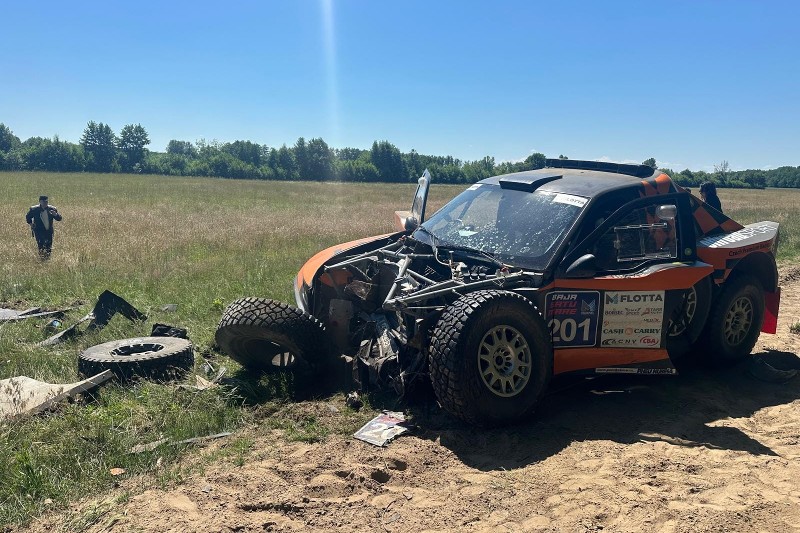 Both drivers, competing in Ford F-150 T1+ cars, collided after a navigation error sent one of them in the wrong direction, causing Zapletal to t-bone Mészáros in the driver’s side. Mészáros and co-driver Erik Pál got out of their vehicle without issue, but the former reported feeling pain in his left leg upon standing up and decided to go back to Hungary for evaluation. Zapletal and Marek Sýkora escaped injury, though their Ford suffered substantial front damage.