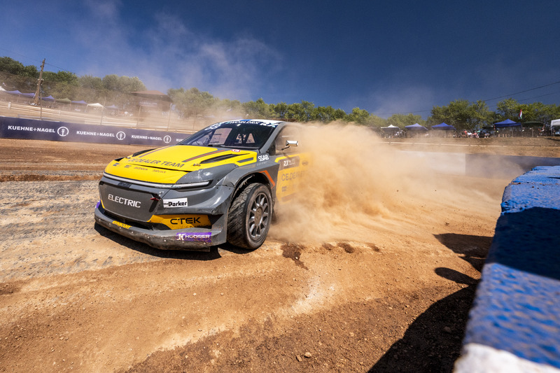 It was also disappointment for Grönholm’s CE Dealer Team teammate Klara Andersson. The Swedish driver was showing superb pace throughout the day, winning her second heat race and challenging the Hansen brothers for victory in her semi-final. Unfortunately, a mistake in the joker lap sent her into the barrier, and, in a desperate attempt to rectify the situation, she inadvertently speared her PWR RX1e into the barrier again, causing terminal damage to her steering and suspension.